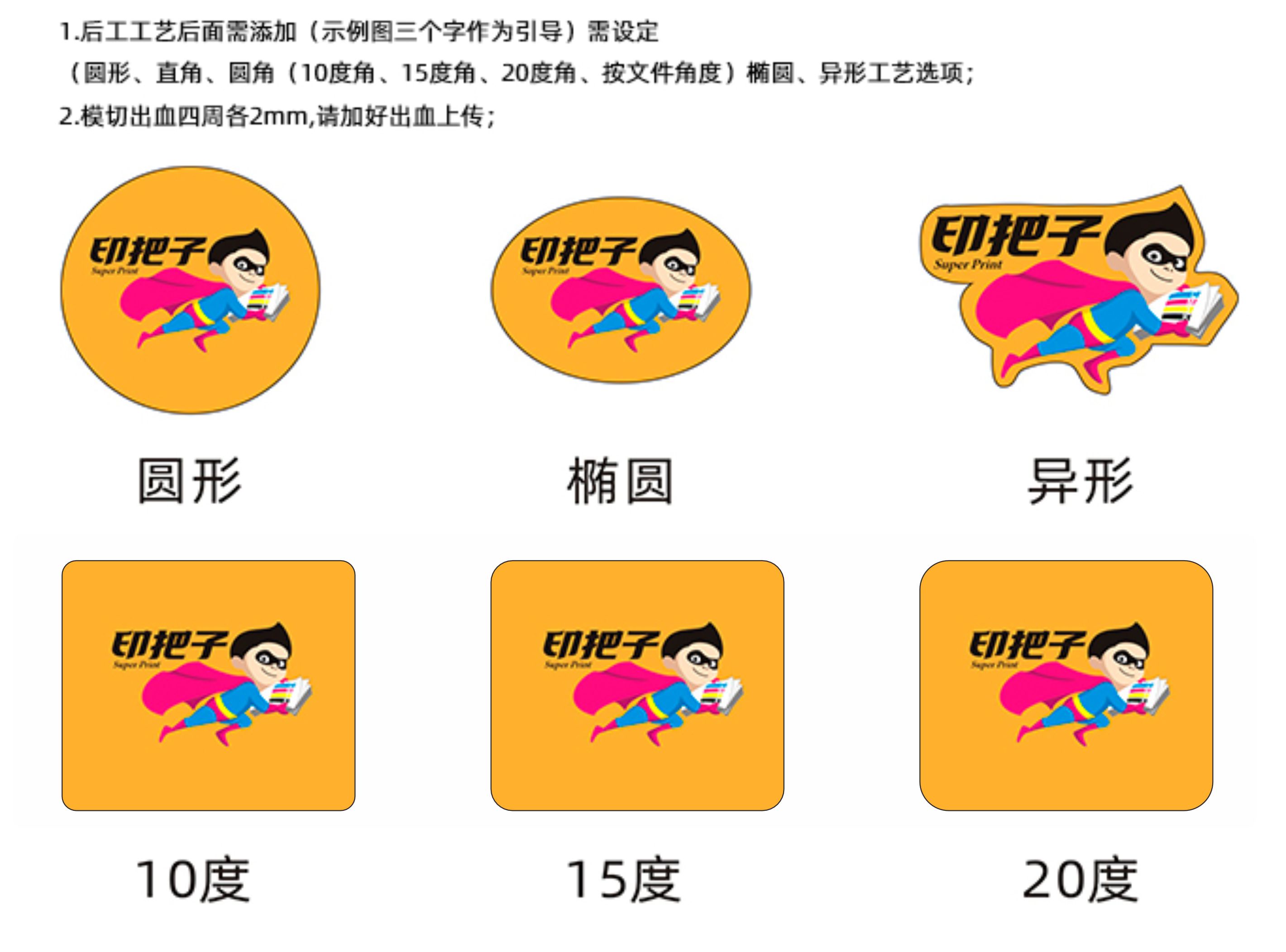 3. 出血要求,裁切类出血距成品线为2mm(模切类出血距成品边4mm);