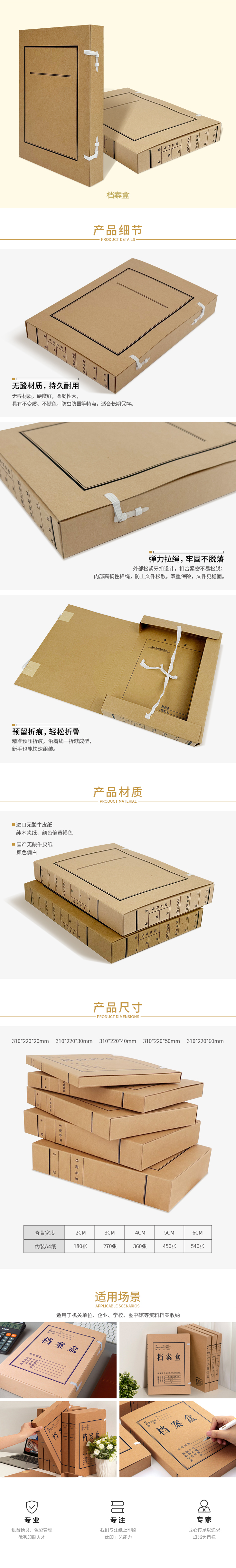 档案盒是采用加厚无酸牛皮纸精制而成,用于集中收纳、分类整理、长期保存纸质文件资料的专用收纳容器,是机关、企业、学校、单位及家庭通用的纸质收纳文具。