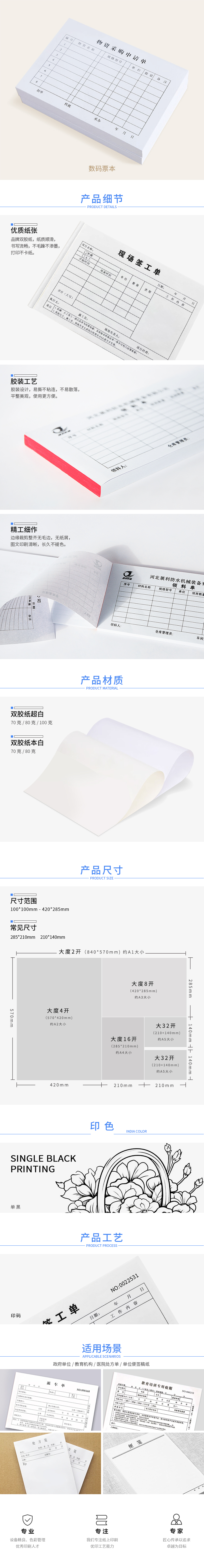 数码特价产品-数码票本字迹清晰,多规格;精选原材,纸张顺滑,书写流畅舒适。可添加数码可变数据,让每一张都独一无二。 下单注意事项:1、文件格式:支持JPG(分辨率不低于300像素/英寸)、PDF、Al、CDR等格式。2、裁切成品会有2-3mm误差,设计时请注意有效内容距边至少3mm,保持美观性的同时也不会被裁到。3、CDR、PDF、Al格式的文件,文字必须转完曲线,图片格式分辨率达到300像素/英寸。印刷文件色彩模式为CMYK,印刷与电脑屏幕显示也存在差异。